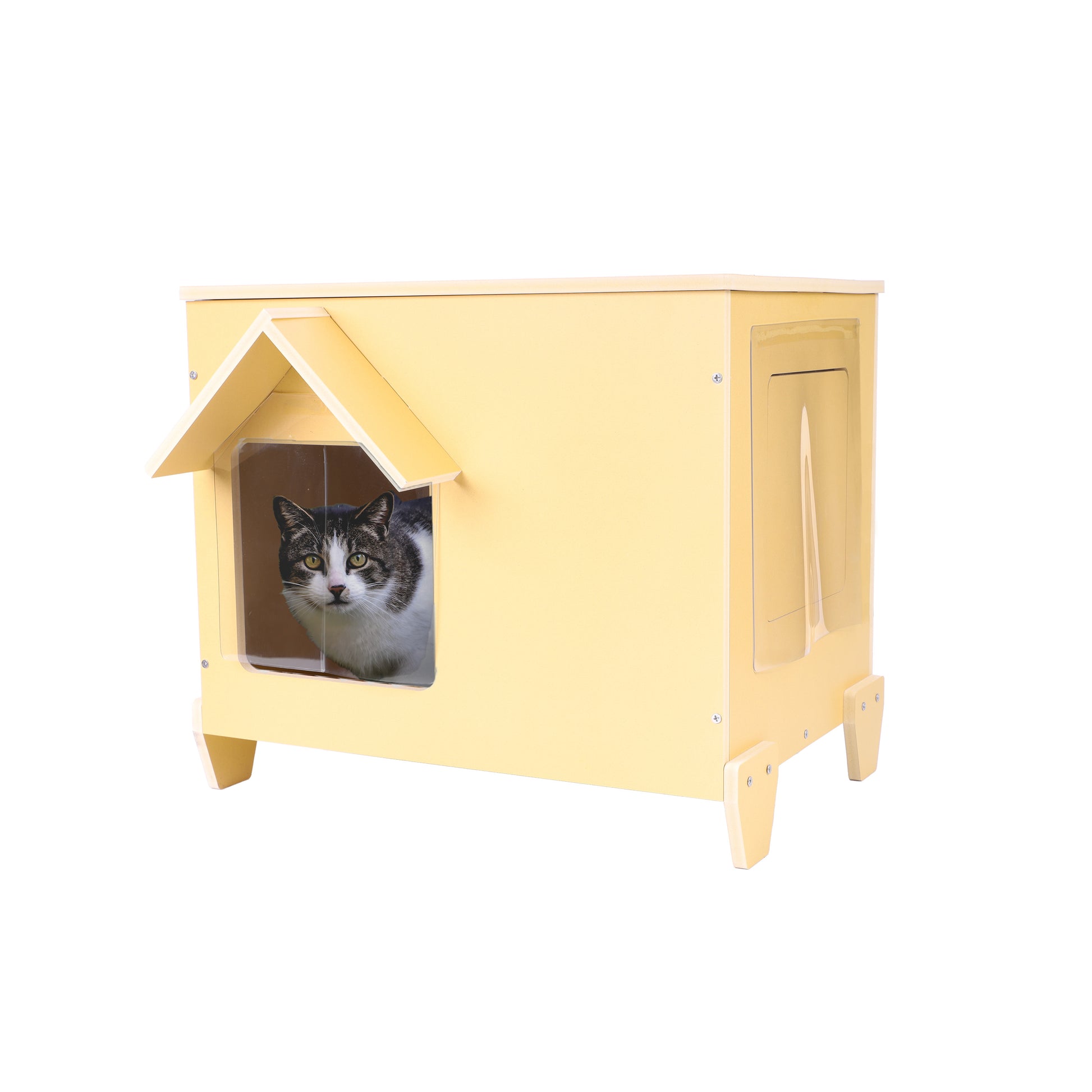 - [Tamaño adecuado para un gato] - Con dimensiones de 17,32" de largo × 12,99" de ancho × 13,38" de alto, además, las patas también levantarán la casa para gatos 2 pulgadas. Esta casa para gatos es adecuada para gatitos pequeños o medianos que pesen menos de 10 libras. Por favor, comprueba las medidas antes de comprar.