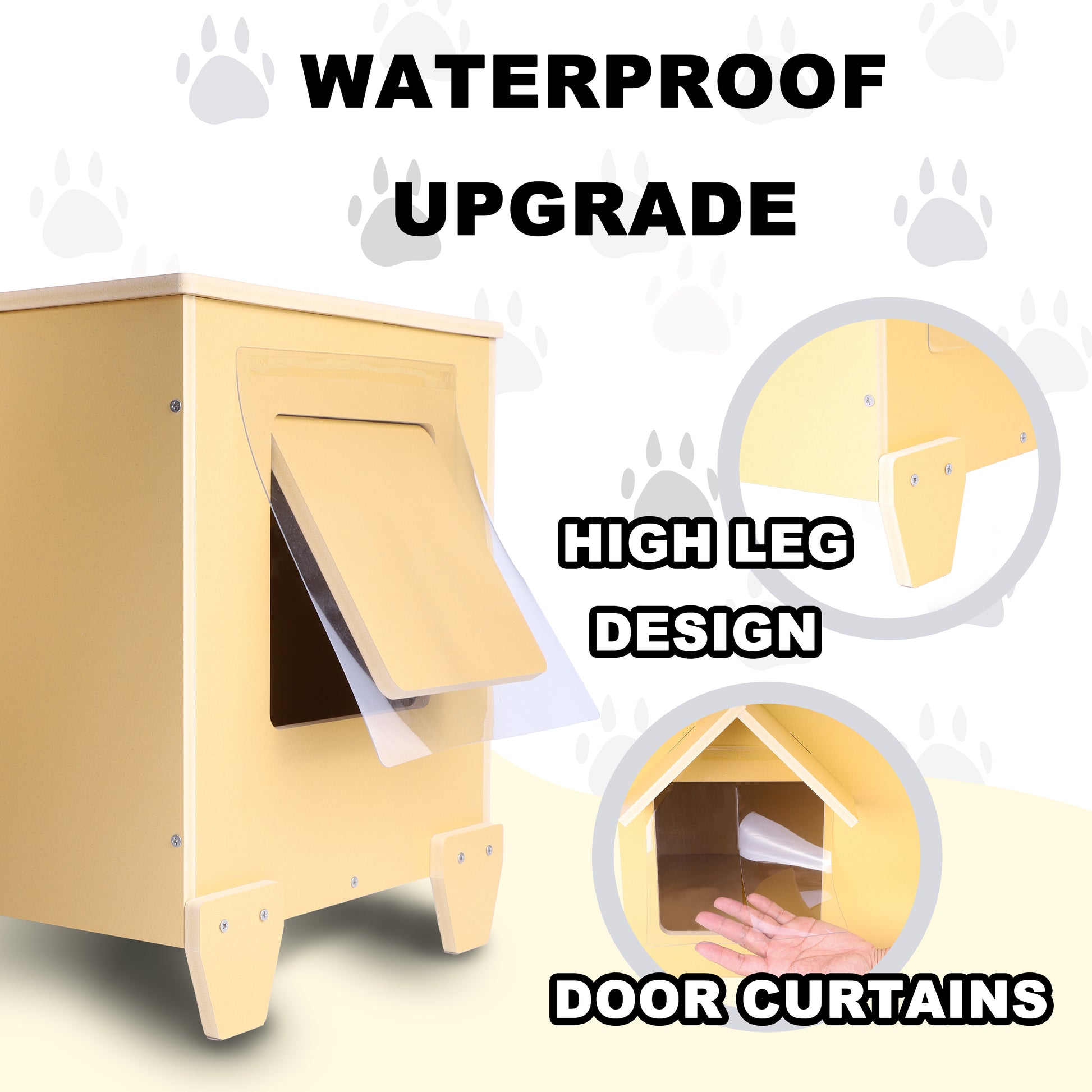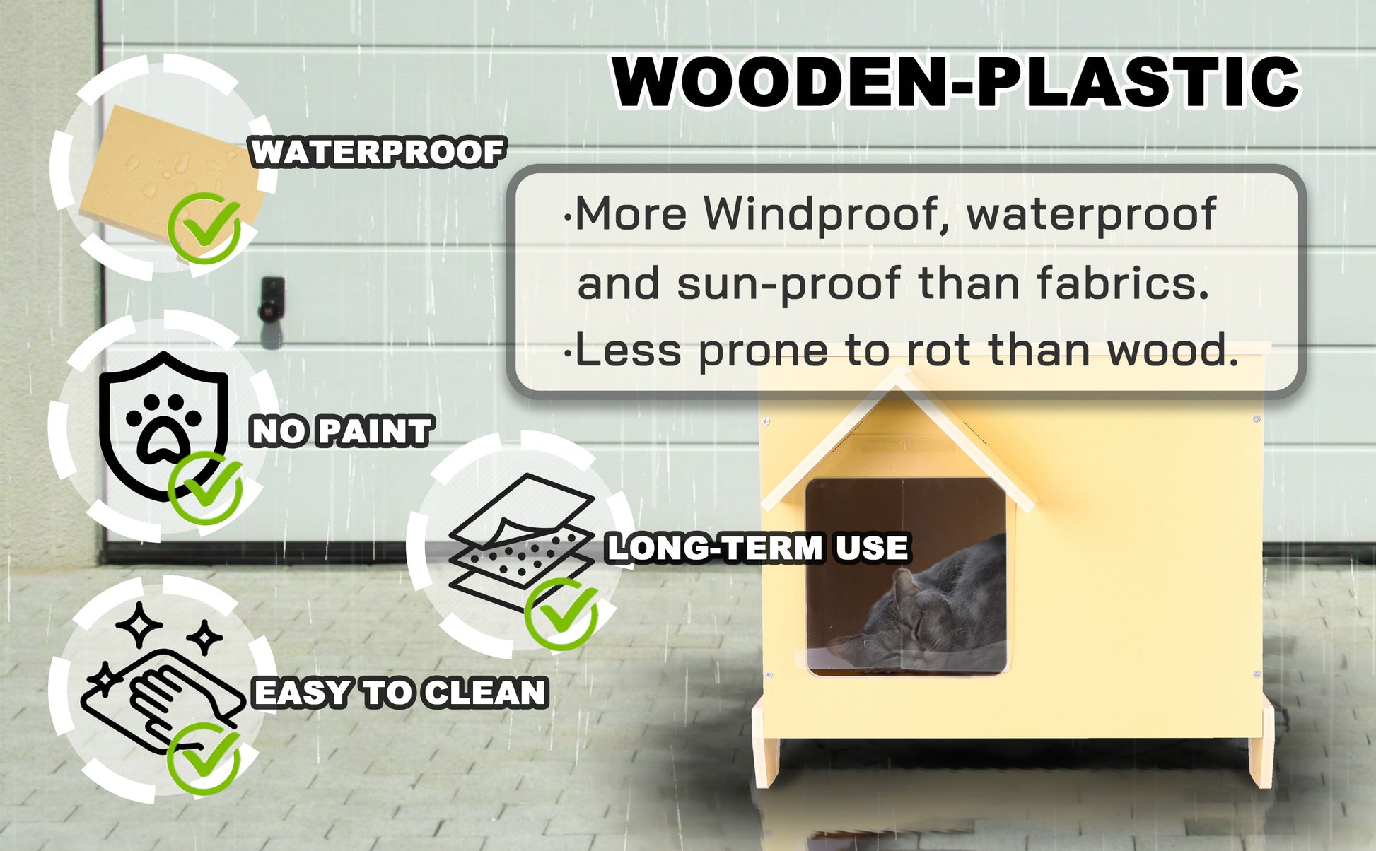 - [Resistente y duradera] - Esta casa para gatos está hecha de una placa de madera y plástico de 10 mm y es sólida, duradera y respetuosa con el medio ambiente. Su superficie de alta dureza garantiza que pueda soportar fuertes nevadas en invierno sin desmoronarse.