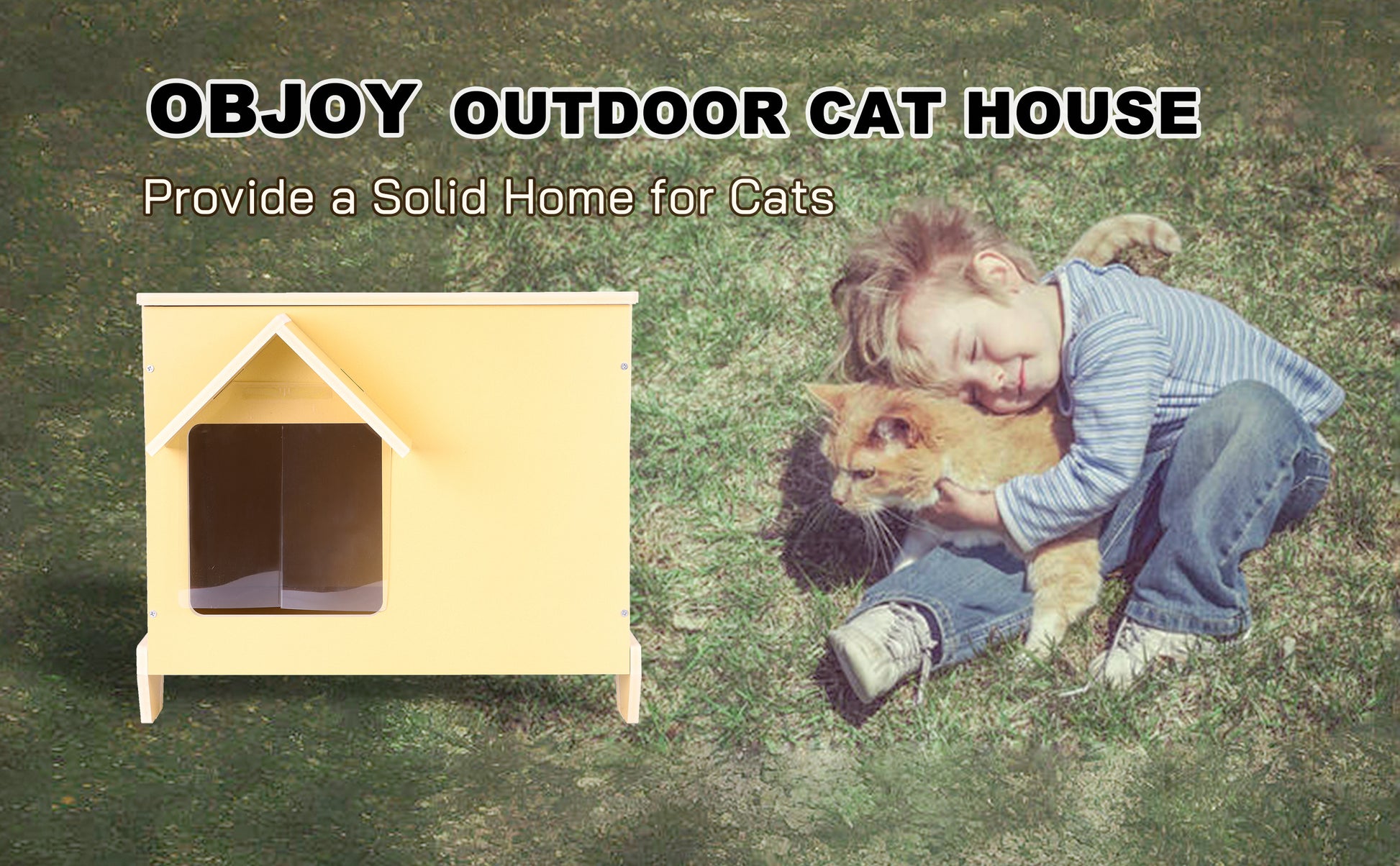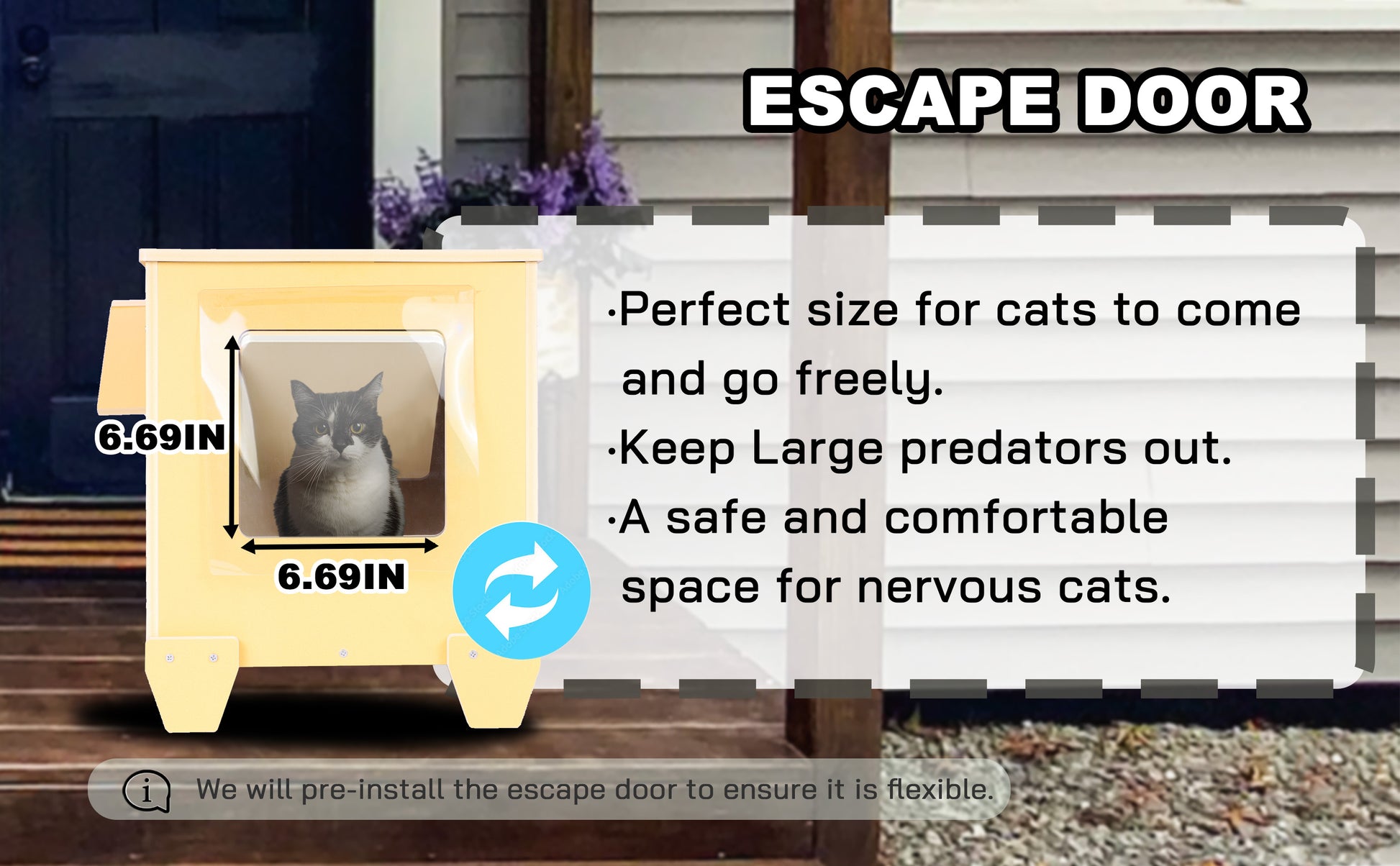 - [Diseño de escape apto para gatos] Esta casa para gatos tiene una puerta de escape con bisagra lateral, que evita que los gatos queden atrapados por depredadores u otros animales. Crea un espacio seguro y cómodo para los gatos nerviosos.